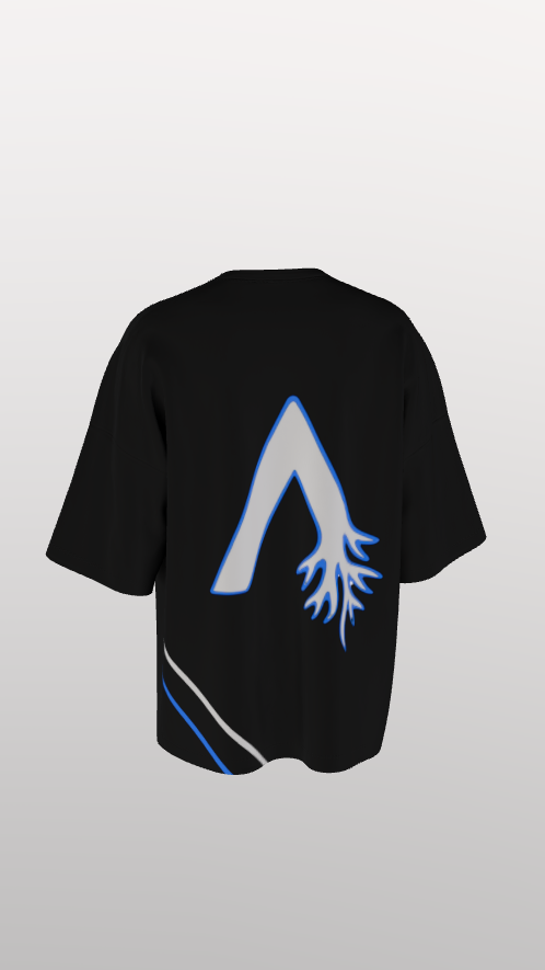 T-shirt oversize noir avec logo bleu. Minimaliste, puissant, street & luxe à la fois. Première pièce iconique de la collection Guava.